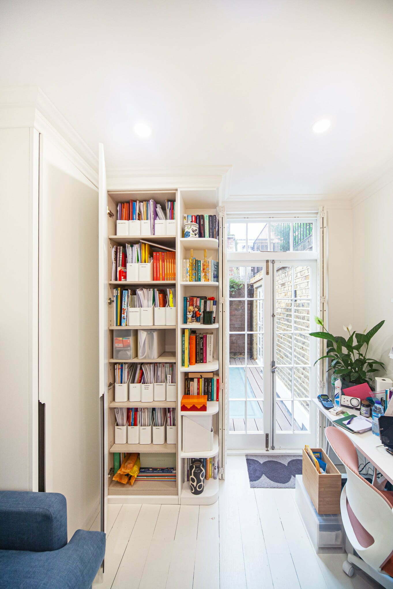 Study room/guest bedroom wardrobes fitted around the sofa bed, overbed cupboards