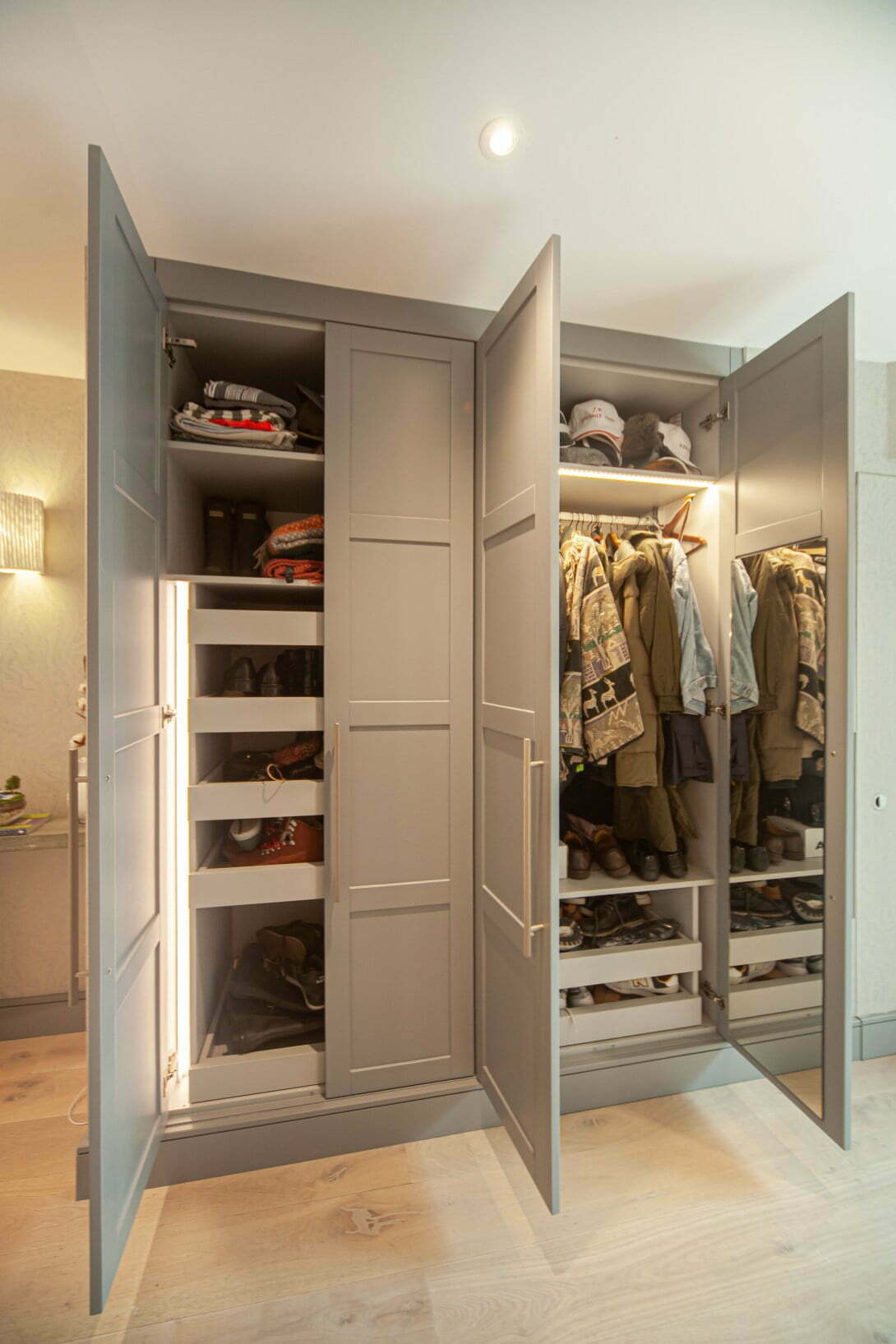 Shaker style lacquered MDF tailor made wardrobe fitted in hallway