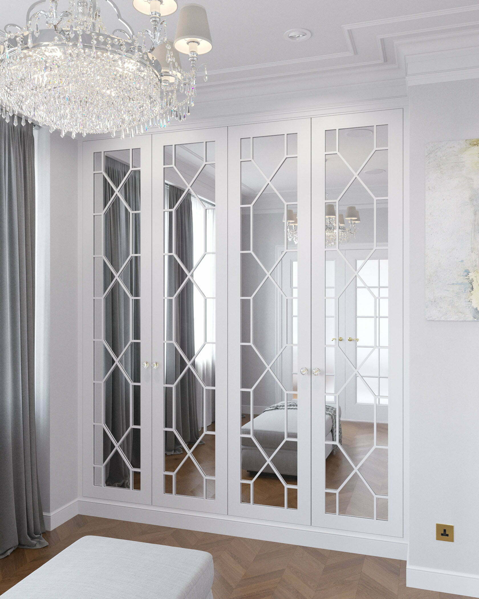 Prisma is our new range of lacquered fretwork doors with mirrored inserts. The doors work well with any type of knobs. It comes as no surprise that geometric designs like fretwork are such a popular trend in interiors at the moment. The herringbone parquet flooring is another example of a geometric design, which again enhances the visual appeal of these rooms. Fretwork comes from the French word freter which means lattice. The skill of fretwork began over 3000 years ago in Egypt. The intricate fretwork design is a standout feature for each room. The wardrobe doors are very decorative and really define the space. There is no ignoring their beauty or the statement they make.