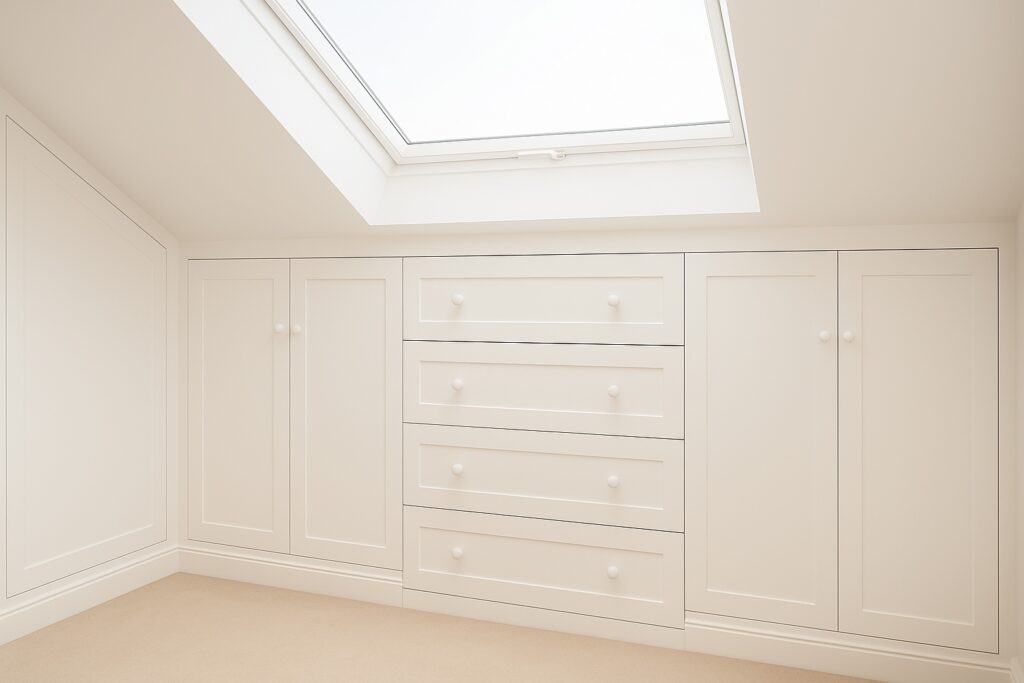 Our handcrafted under-eaves wardrobes are fully tailor-made and designed to fit perfectly into your loft or any room with a sloping ceiling. Each piece is built entirely to measure, seamlessly fitted, and crafted from high-quality MDF or hardwood, ensuring a flawless finish and maximum use of your space.